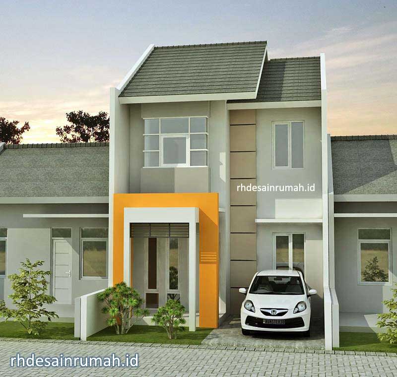 Desain terakhir adalah rumah minimalis dengan aksen warna orange.