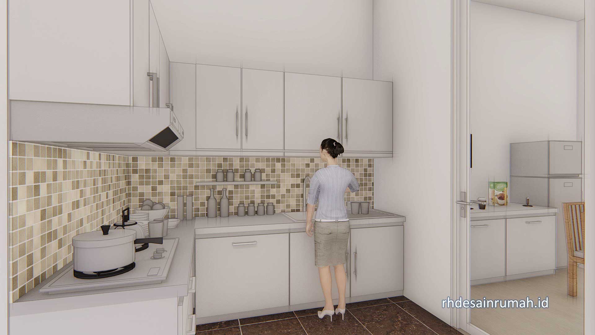Rumah dapat Anda manfaatkan untuk open space. Dapur yang di desain terbuka terletak di belakang rumah. Kamar mandi lainnya terletak di sebelah dapur untuk memudahkan aktivitas memasak.