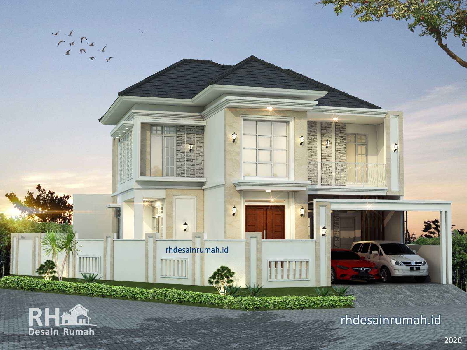 Rumah dengan desain 2 lantai ini memiliki bentuk melebar ke samping dan tidak menghadap ke jalan. Terlepas dari itu, rumah dengan gaya Klasik ini menggunakan beragam ornamen dan aksen yang cantik. Seperti batu Palimanan untuk dinding dan pilarnya.