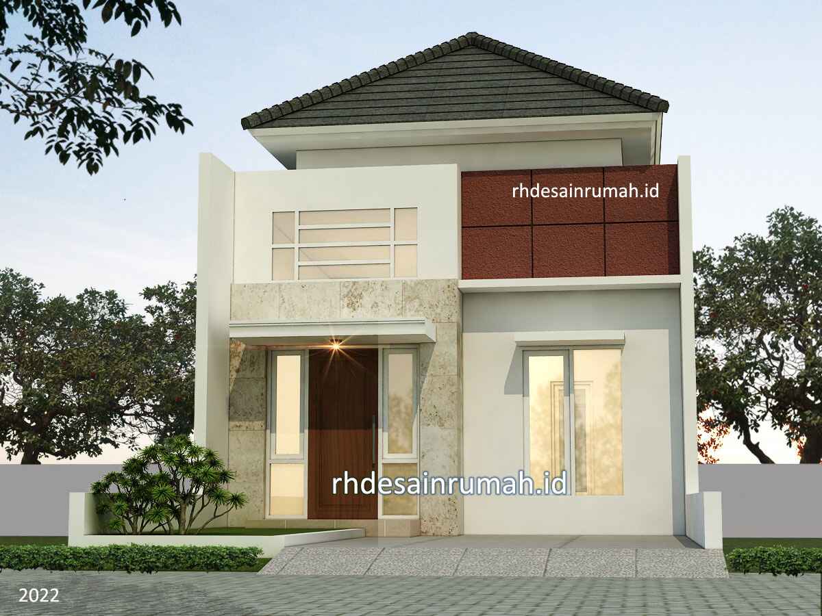 6 Perumahan type 36 atap limasan elegan aksen warna merah dan orange. Nampak lebih mewah dengan atap limas dengan atap genteng beton flat. Adapun model rumah modern terlihat dari ornamen kotak-kotak dan mainan tali air.
