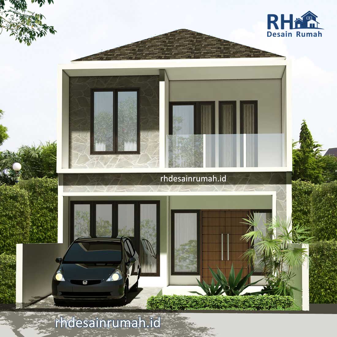 Desain rumah minimalis 2 lantai berikut ini memiliki luas 6×11 m. Aksen keramik glasir dan dekorasi kayu ditempatkan saling berdekatan. Pilarnya yang terbuat dari batu alam memberi nilai lebih pada rumah minimalis 2 lantai ini.