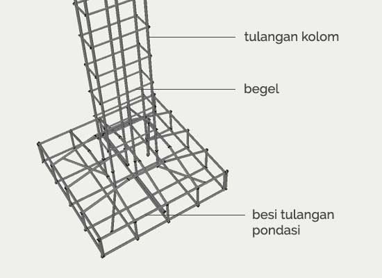 - Besi untuk Cakar Ayam: Pondasi cakar ayam memerlukan rangka besi dengan diameter 12 mm hingga 16 mm yang disusun membentuk rangka segi empat dan diikat dengan besi sengkang berdiameter 8 mm.